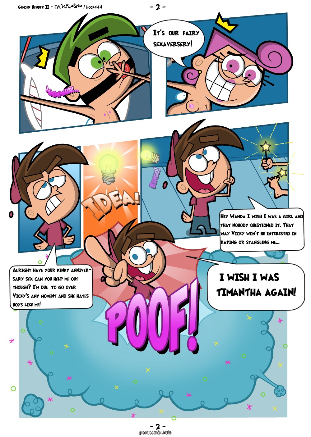Timmy Turner getting ready to fuck with his magic godfathers in this new and exciting Adult Comics, This boy is very horny and will want to fuck with his entire neighborhood because the pervert loves to stick his cock in several buckets.