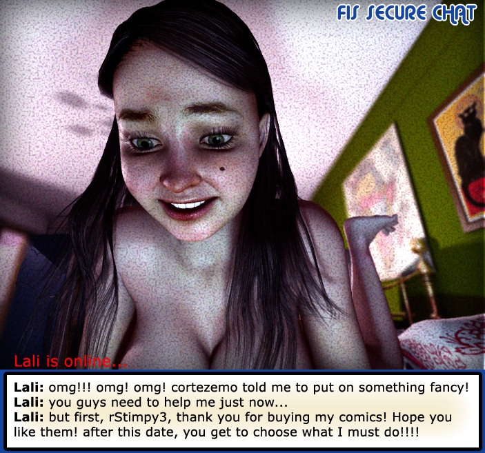 A beautiful girl getting naked in her chat showing the best. 3D colorful comic very exciting with this sensual young woman who loves to show up online for her friends.